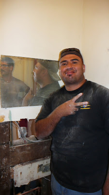 Emilio my foreman extraordinaire/friend in the old shower/new kitchenette